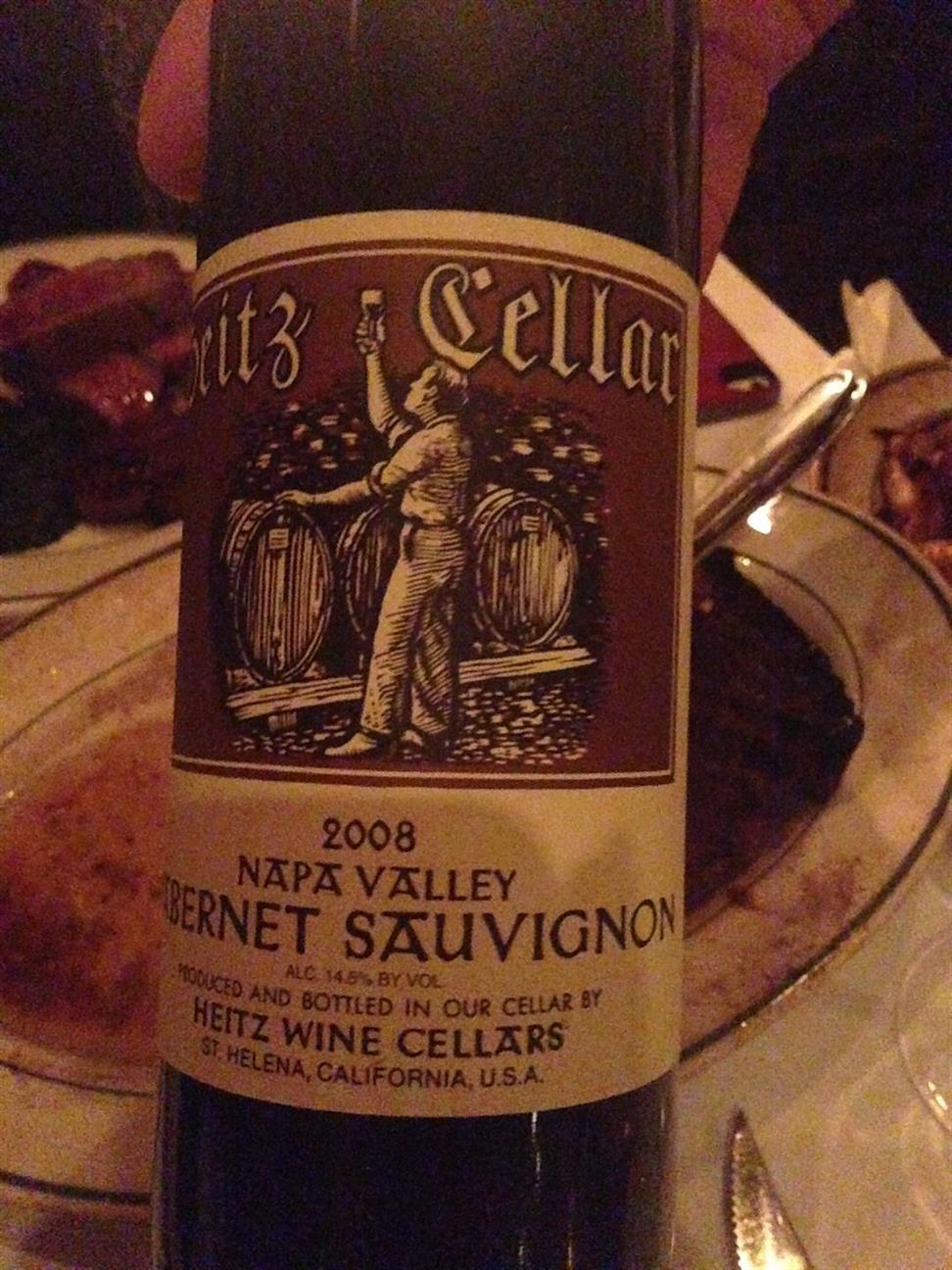 Next came a bottle of Heitz Cellars 2008 Cabernet Sauvignon. This wine is truly unbelievable and one of the best Cabernet’s I have had in a very long time. This wine is smooth, creamy, and strikes you with cherry, chocolate, and violet notes. On the palate there are some hints of black fruit and coffee. The tannins in this wine are integrated extremely well and I wound up drinking more than half the bottle with out even realizing it! What did we pair with this wine? Porterhouse Steak: rare of course, a rack of Lamb, Hash Browns, Asparagus, and Creamed Spinach.