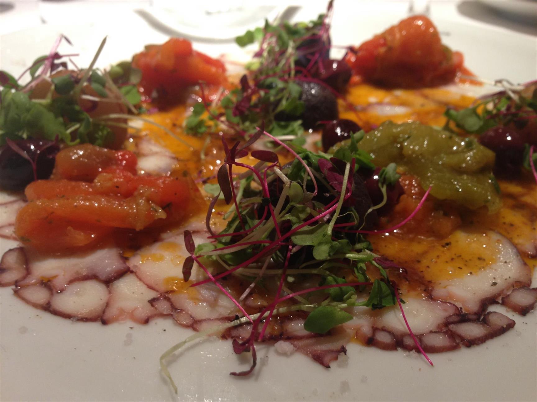 was a “pretty” surprise, was the Acai-Blueberry Van Gogh. This one is a beautiful purple color and is full of prominent berry aromas. This sweeter vodka paired very well with my salty, tangy, and savory Octopus.