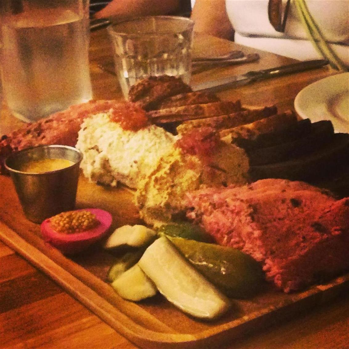 DGS Delicatessen, a completely different style of food, atmosphere, and menu impressed once again. Slow cooked, perfectly charred Pastrami, Corned Beef, and Smoked Salmon hit the table. Accompanying the meat and fish were Chicken Liver, White Fish Spread, and Pickles. This large tray of heaven made myself, and the rest of the food tour very happy. By this time, a cocktail was in order and the Bordreau Cocktail was calling my name! This cocktail packs quite the punch and is