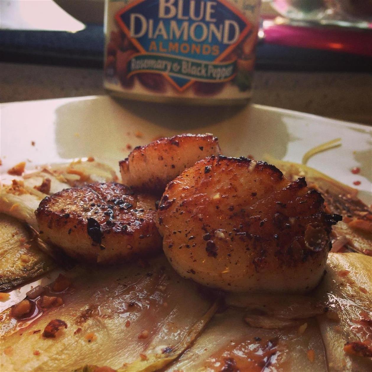 Blue Diamond Endive and Scallop Salad- Sweet, Savory, and Crunchy, “this dish is del-lish” for a filling summer salad!