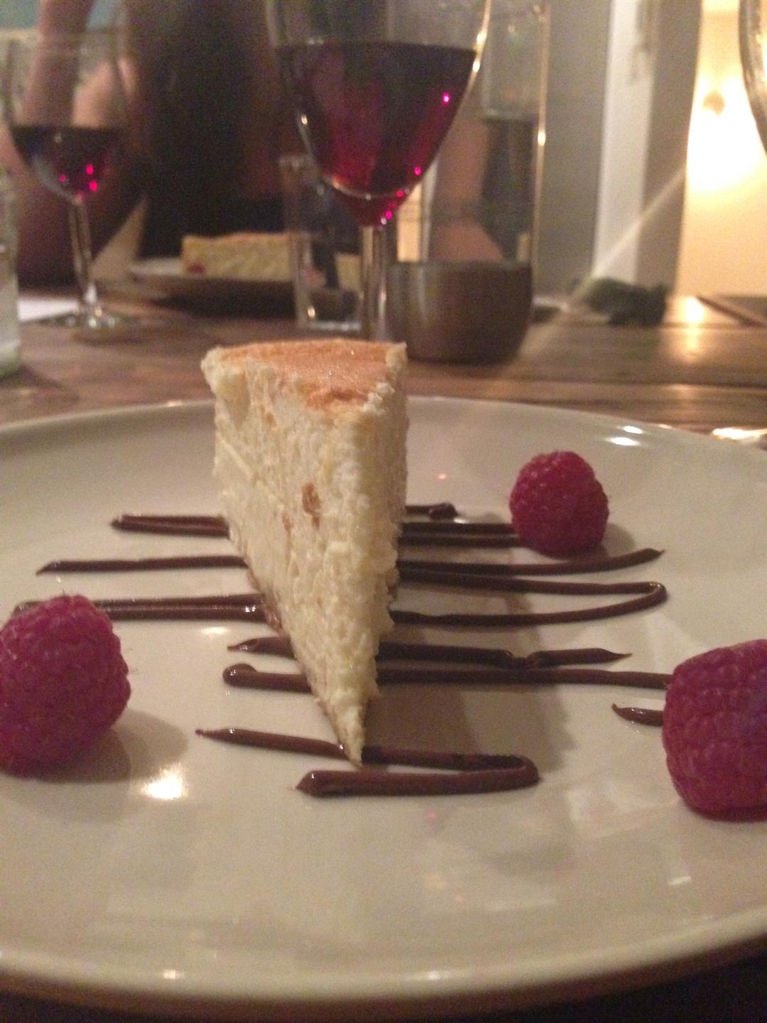 than baking, but also makes desserts. This was a surprise to me because her Cheesecake is delicious. This cheesecake was full of vanilla and was so creamy, yet light and airy at the same time. I must say, for someone who doesn’t absolutely love the pastry side, she certainly fooled this former pastry chef! Certainly make her stick around to make dessert, because her cheesecake won this Somm’s heart!