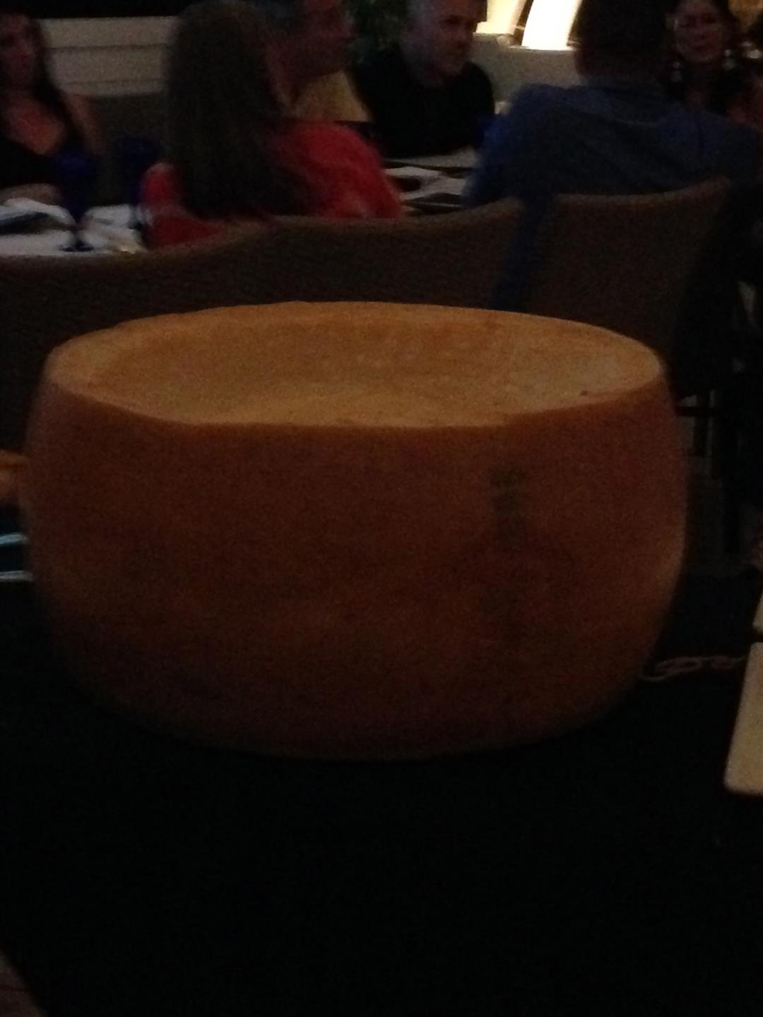 Here they light a gigantic wheel of parmesan on fire, throw in pasta and sauce, and scrape the parmesan into the pasta, giving you one incredible dish!