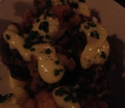 This restaurant focuses on ingredients that are fresh, home made, and comfortable. Even the facebook page has videos of Chef Joe whipping up some amazing dishes, which ties in with this friendly, passionate, restaurant. Chef let me taste my way through a selection of Smoked Cauliflower that was sensational! Accompanying the smoked deliciousness was home made Tater Tots with Whiskey Caviar on top; it was out of this world amazing. Paired with these two dishes was the fun Biblio 75, a sparkling cocktail that packs quite the fruity punch! This one totally hit the spot with these fun appetizers!