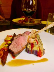 For the third course, they brought out a Roasted Rack of Lamb with Rosemary Jus, Salsify, Lemon, and Eggplant Terrine. It was paired with a 2010 Brunello di Montalcino, which was out of this world! 2010 was one of the best vintages in Tuscany, and this Val di Suga, Vigna Spuntali is quite an iconic wine. Tuscan wines are a nice pairing with lamb, but this one, in particular, has no tannins, wood and earth notes, and really was made for this dish, which was served to Prime Minister John Major. After that lovely pairing, out came a cheese course which was served to the six leaders of the Free World during the 40th Anniversary of the United Nations in 1985. This dinner was