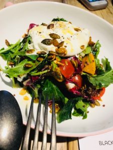 I had the pleasure of tasting the menu at the new shop and cafe. The food is absolutely spectacular and will wow your palate with exciting flavors, aromas, and sensory experiences. We started off with the White Pizza with Spicy Coppa, Arugula, and Blackbarn White Truffle Oil and White Truffle Cream, alongside the Butternut Squash Salad, with Kale, Quinoa and Burrata topped with a Blackbarn White Truffle-Acacia