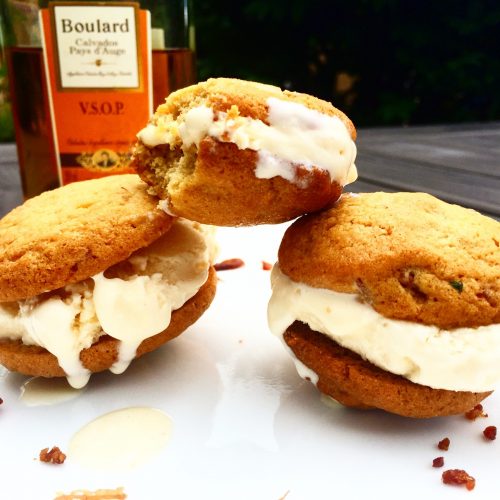 Attention Calvados fans: I was recipe developing in my kitchen (because I recently launched a Alcohol Infused Catering Dessert company called Booze InfuZed) and came up with a delicious cookie ice cream sandwich that will wow your guests and surprise your palate!