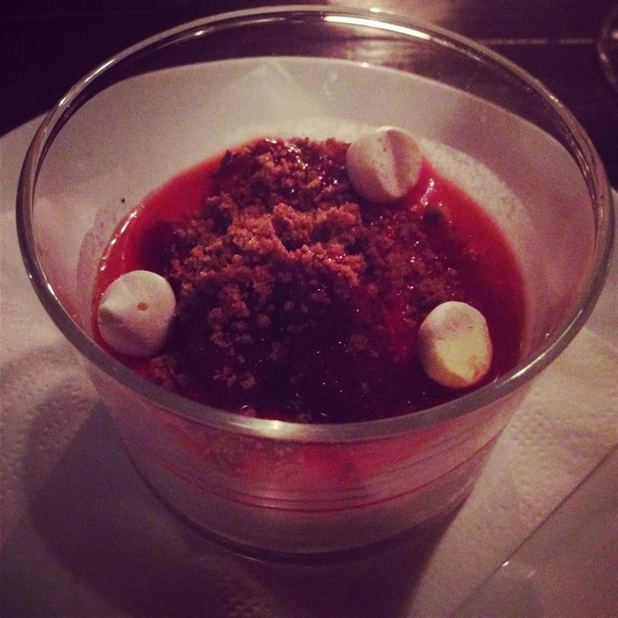 For dessert, because being a former pastry chef, I am always wanting to try desserts, I chose to have the Chamomile Crème and Ginger Crumble with Roasted Strawberries and Meringue. This dessert called for a little more Rosé in my glass to pair with this wonderful third course.
