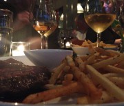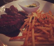 atmosphere. The 2000 Vintage Champagne was up next and called for the Flatiron Steak with Pomme Frites. This dish went very well with the wines as the 2000 and 1995 both have enough body and structure to stand up to a perfectly cooked piece of red meat. It was a fun and delectable pairing, and one I will absolutely try again at home!