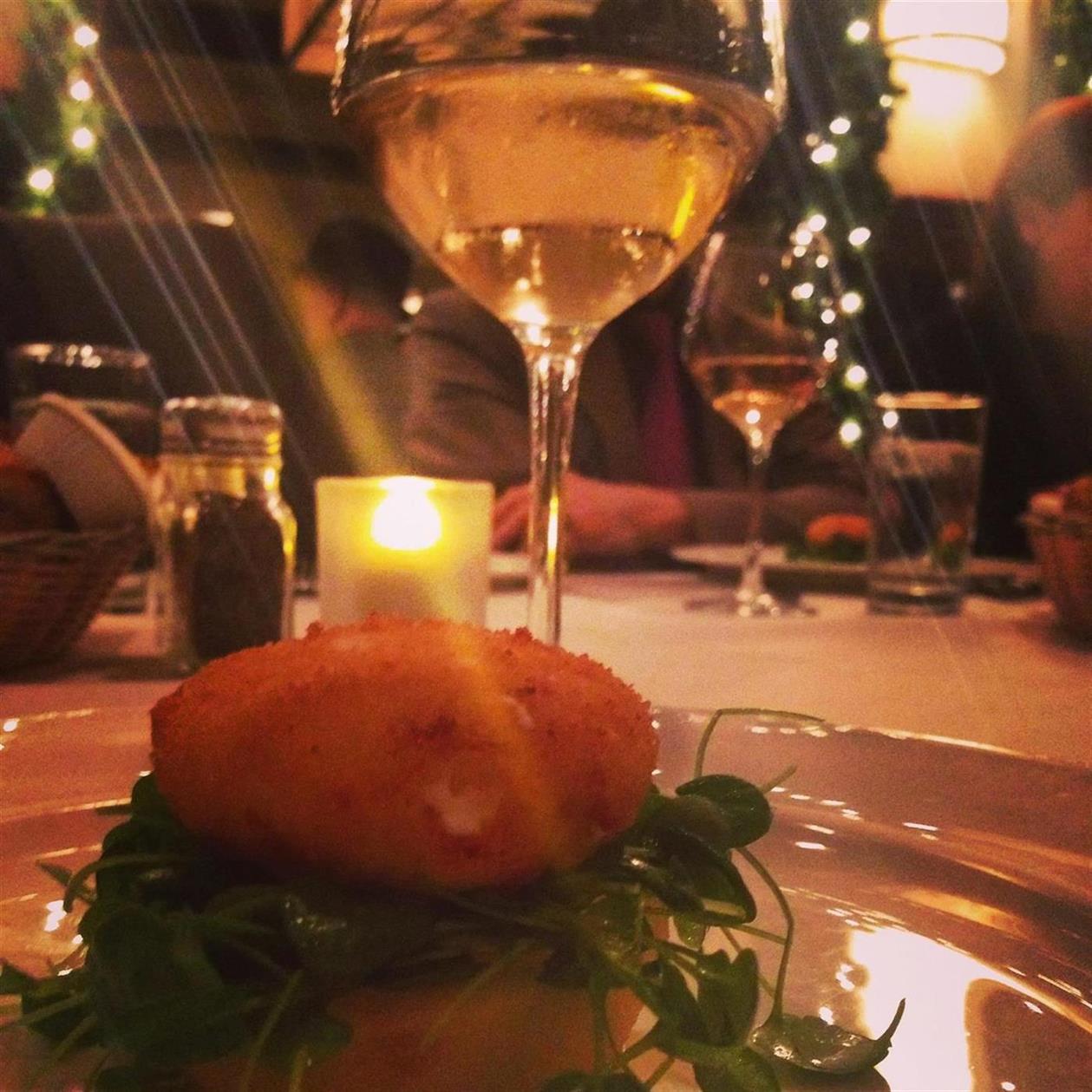 Evangelo Chatzivaritis and his wife joined us for dinner at Docks Oyster Bar in NYC. Here, Chef prepared a wonderful menu to pair along with the wines. The first course: Upland Cress with Bosc Pear and Goat Cheese Croquet was beautifully plated and paired with the Eurynome White Roditis 2013. This wine is crisp and elegant which pairs nicely with the creamy cheese and sweet pear.