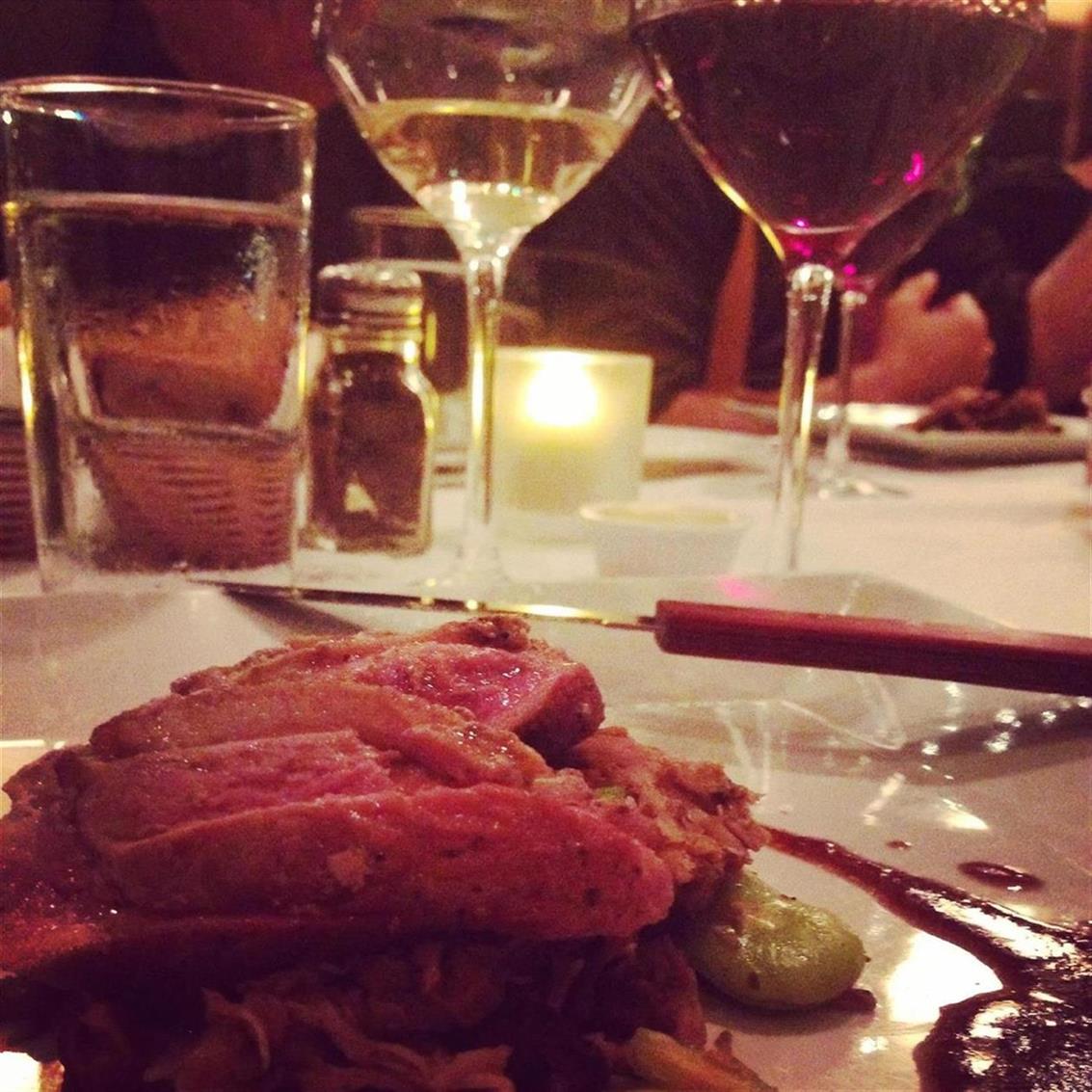Butter Poached Maine Lobster with Belgian Endive was next. Paired with this meaty and succulent dish was the 2013 Staphylus White Assyrtiko/Sauvignon Blanc Blend. This wines brightness and body paired well with the buttery lobster and slightly bitter endives, which was a perfect choice to round out the pairing.