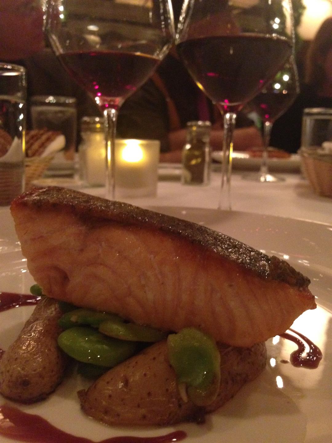 For the final savory course, I was very happy to see a fish pairing on the menu, especially with a red wine. Skuna Bay Salmon, Crispy Fingerling Potatoes, Fava Beans, and Pomegranate Glaze paired with the 2011 Eurynome Red Xinomavro/Negoska Blend. This dish was heaven! The salmon perfectly flaked bite by bite, and with the crispy potatoes, sweet glaze, and red wine pairing… it was a great fourth course.