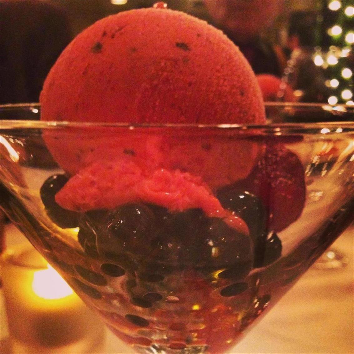 To our surprise, chef brought us out a little sweet treat. Housemade Raspberry Sorbet with Berries; a great choice to compliment the rest of the reds.