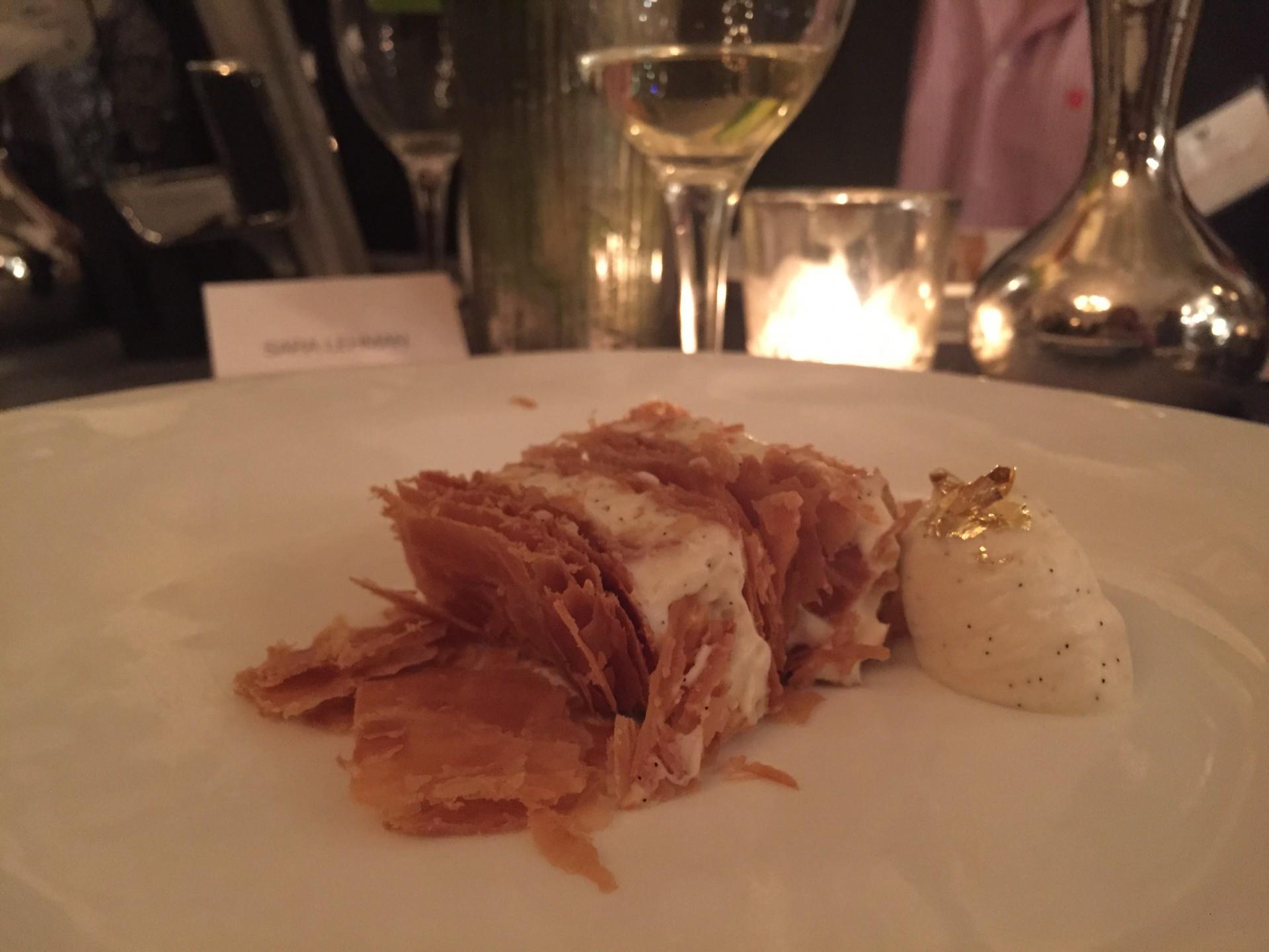 To finish the meal with something sweet, a Millefeuille Thousand Layer Cake made from Puff Pastry, Vanilla Cream, and Dulce de Leche was paired with a sweet German wine. 2013 Scheurebe Beerenauslese Westhofen Morstein, Keller was the perfect wine with this dessert. I happen to love German wines, and in my opinion Beerenauslese is very under appreciated simply because many people do not know how to properly pair and enjoy these sweet German wines.