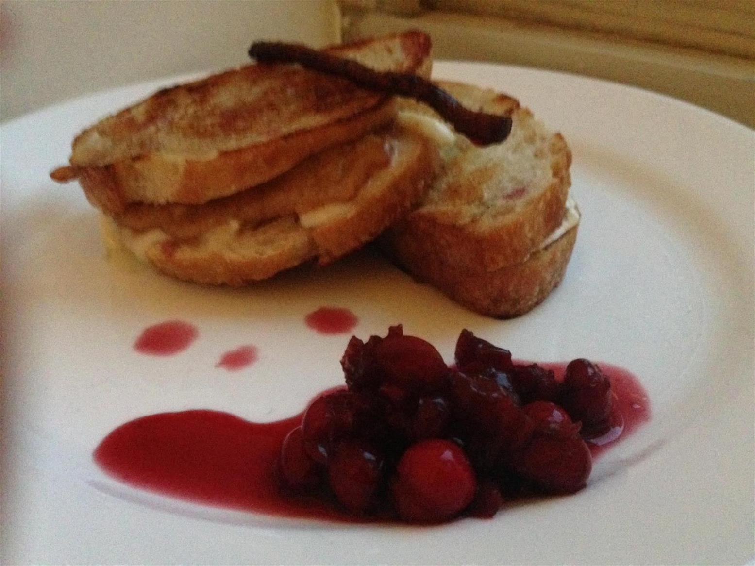 With the Banfi Chianti Classico, I love a nice berry like grilled cheese; something nice and fruit forward like the wine. Grilled Sourdough Bread topped with Brie Cheese, Fried Cinnamon Apples, and Cranberry Licorice Sauce. The berry, sweet, and savory flavors in the grilled cheese pair beautifully with this wine and just scream fall.