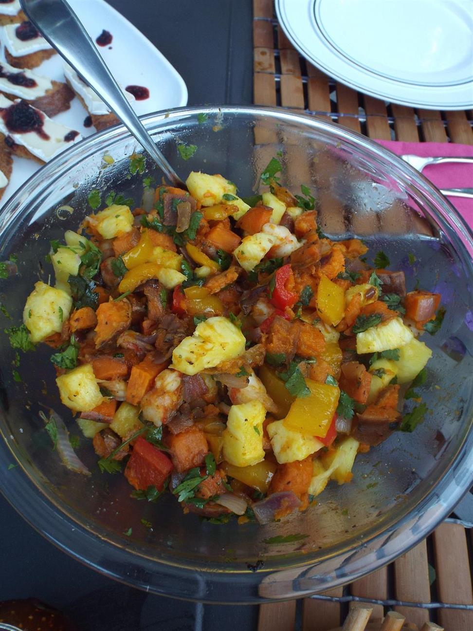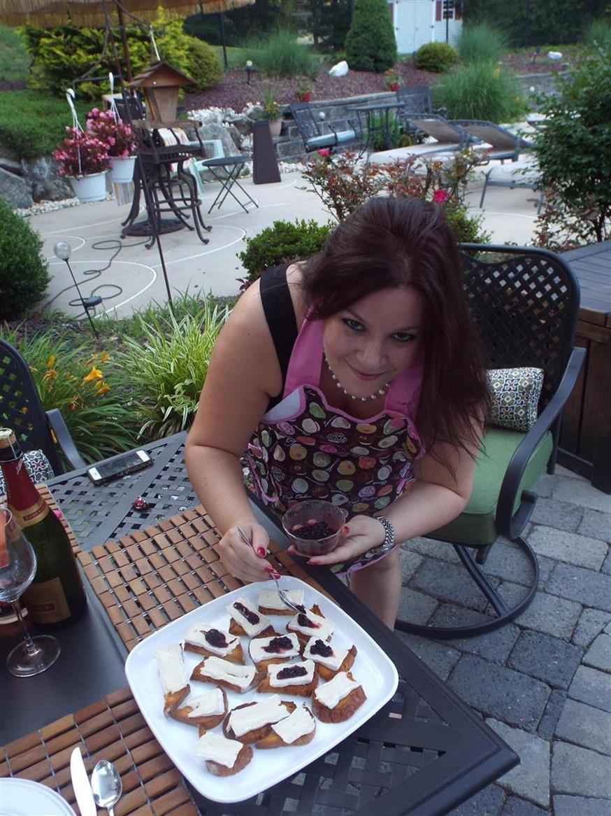 I decided to do some slightly healthier “tapas” this time, seeing as it is summer and we had four great sparkling’s to taste. A selection of Wegman’s Cave Cheese, Mild Blue, Brie, and Aged Cheddar was a wonderful start with the first wine. The Lucein Albrecht Crémant d’ Alsace: Blanc de Blancs, Brut is light with a delicate palate that’s perfect with some cheeses. Also paired was Brie on Baked Garlic and Olive Oil Crostini topped with muddled Black Berries and Mango Vinegar. Sweet flavors, creamy textures, and bubbly wines sometimes make a perfect combination.