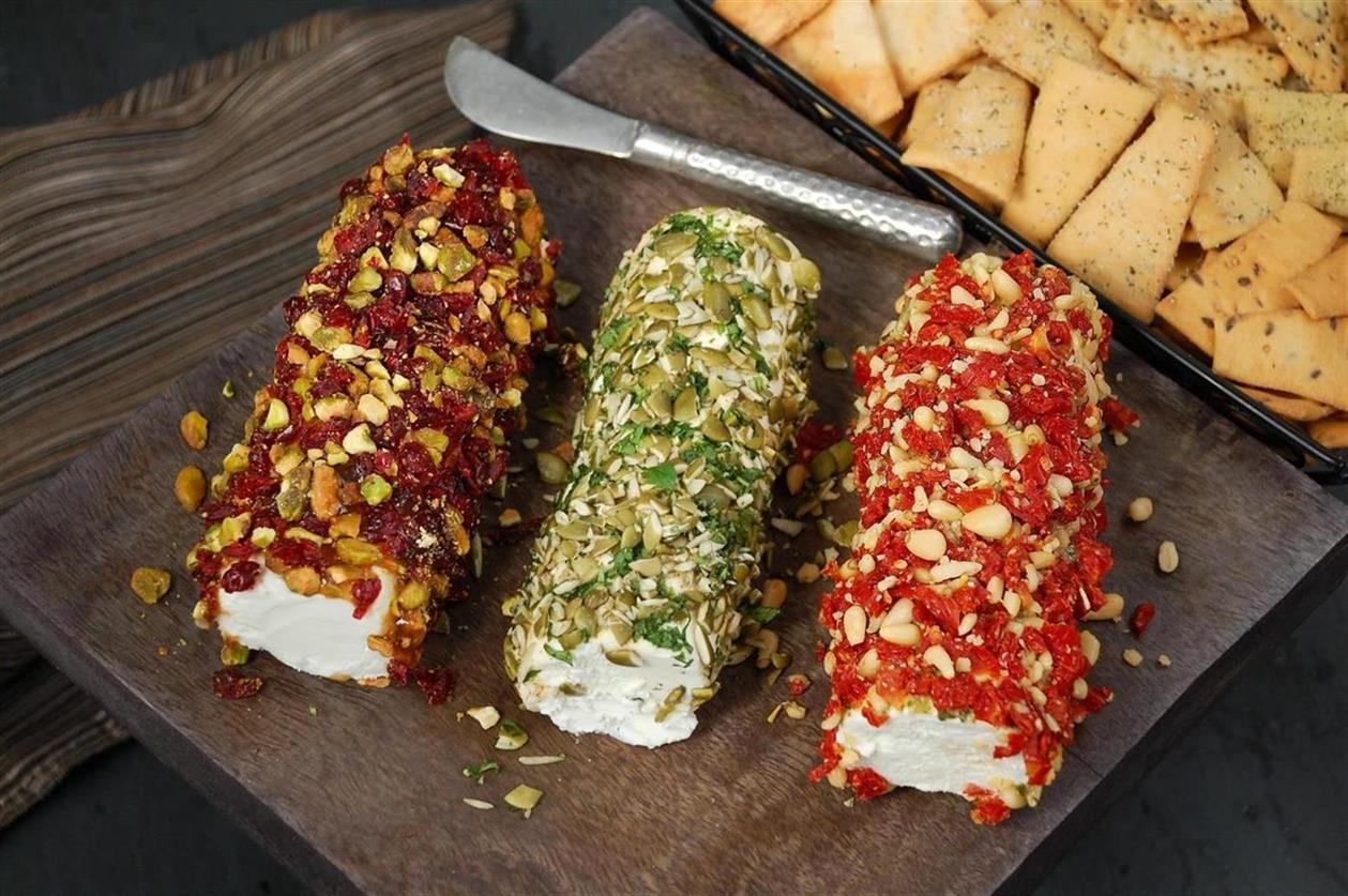 Roll goat cheese in pepitos mixture, pressing mixture into goat cheese until evenly coated. Serve with New York Style Pita Chips.