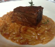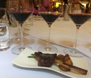 Diver Scallops, Smoked Eggplant, and Grape Arugula Salad was the first course, paired with a 2012 Falanghina del Sannio DOC, a 2011 Fiano di Avellino DOCG, and a 2011 Greco di Tufo DOCG. The scallops danced with merriment when paired with the Falanghina, while the Greco and Smoked Eggplant paired wonderfully. The arugula salad was packed with flavor and was delightful with each of the wines in the flight.