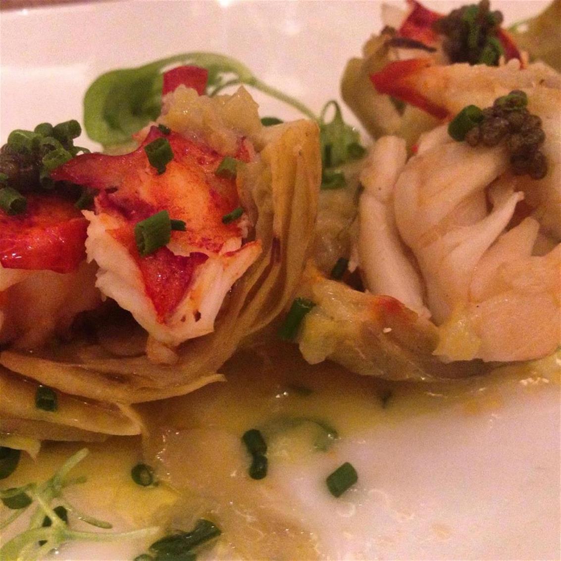 We started the lunch with the 2013 Geyser Peak Sauvignon Blanc. This wine is crisp, clean, and full of Guava, Citrus, and some Lemongrass. On the palate, you are hit with beautiful tropical fruit notes, minerals, and lovely peach. Paired with this was Lobster Stuffed Artichokes with a Basil Butter Sauce. The hint of sweet basil and jalapeno in the wine made this dish brighten up a bit to where it was extremely satisfying.