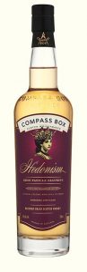 Compass Box “Hedonism” Whisky: ” The inspiration behind our whisky HEDONISM is just that – pleasure, enjoyment, a celebration of that ideal marriage between distilled spirit and high-quality oak maturation. The aromas and flavors hint of vanilla, caramel, a delicate fruitiness, accented by flashes of coconut in the finish. This is a whisky that will appeal to both the ardent whisky enthusiast and newcomers to whisky alike.” – Compassboxwhisky.com $99+
