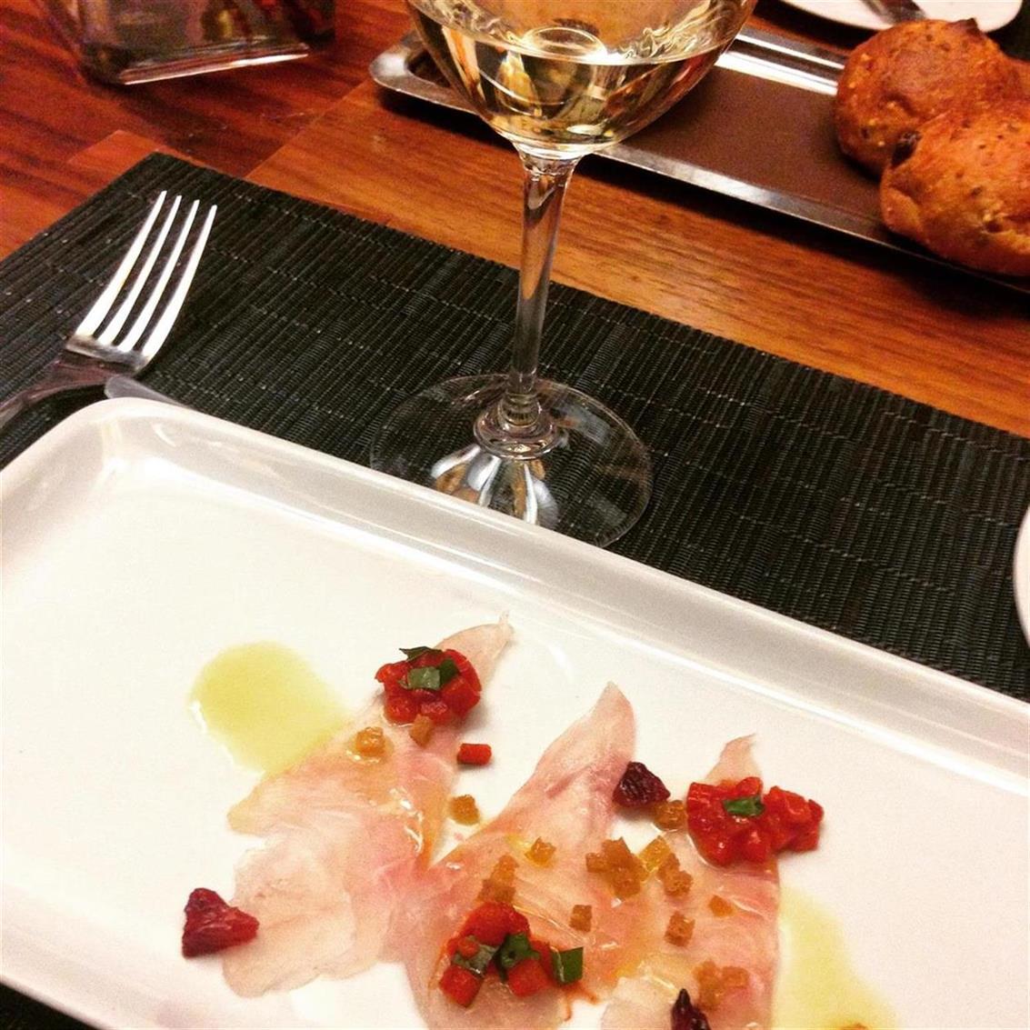 refreshing after the savory and heavy, but delicious terrine. This lighter dish was paired with the Whishes Eratines white 2013. The grapes in this bright and floral white wine: Assyrtiko, Malagousia, and Chardonnay. This was everything you would expect with a proper food and wine pairing, and it was delightful in between courses.
