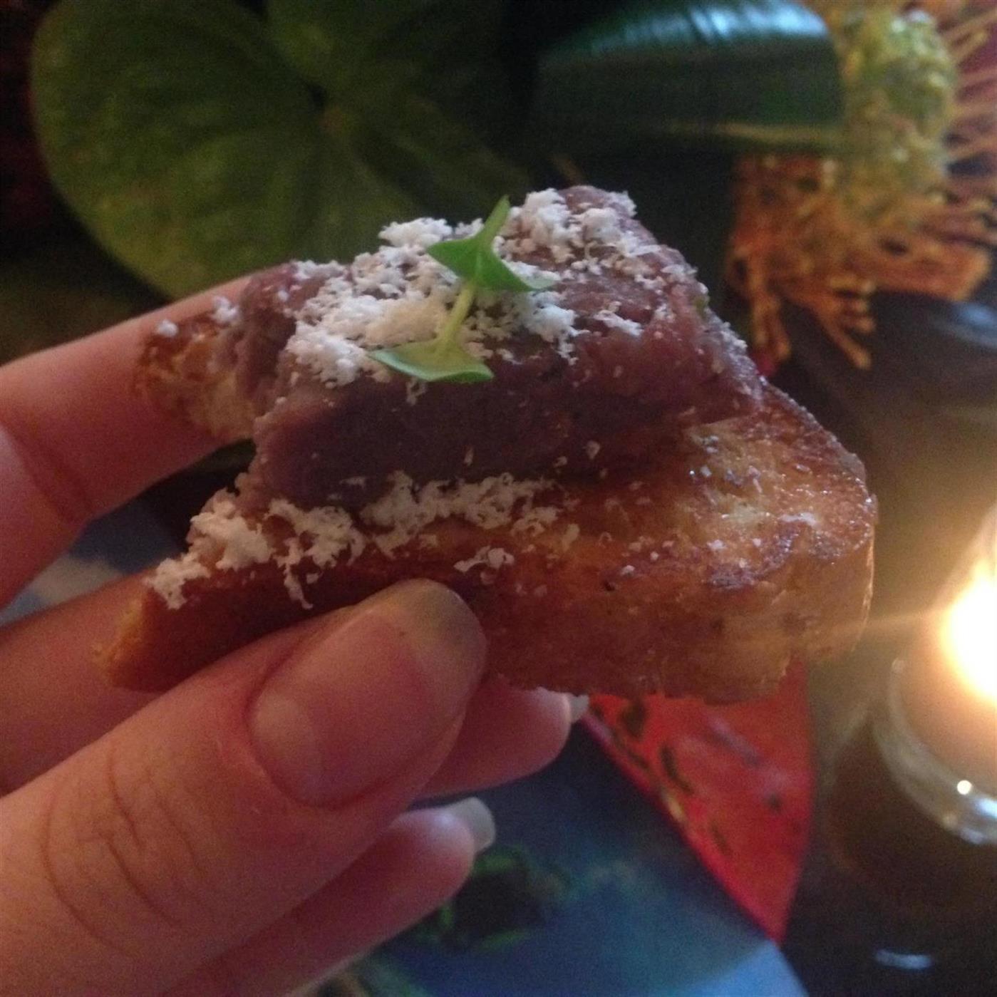 Ahi Poke Nachos were the star and stole the hearts of everyone at the event. These nacho’s combined guacamame, lomi lomi salsa, surfing goat chevre, tobiko and taro chips. I had the chance to speak with Blaine who explained, “This transported me right to Hawaii! Poke is my favorite food and all I eat when I’m home (in Hawaii). This was a variation of the dish. The classic recipe is: fresh cubed ahi, shoyu (soy sauce), onion and seaweed.”