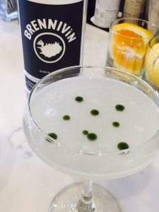 The restaurant is bright and inviting with comfortable seating and a warm ambiance. I sat at the bar so I could, in typical New York fashion, people watch. Here I met the Mixologist Cris, who makes incredible Icelandic inspired cocktails using seasonal ingredients and a Icelandic spirit called Brennivín. First up, a cocktail made with rhubarb
