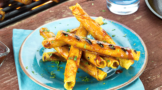 DIRECTIONS: Preheat an outdoor grill to medium heat and lightly oil the grate. In a large baking dish, coat the Chicken Taquitos with 1 cup of the BBQ sauce. Add the Chicken Taquitos to the grill and cook for 6 to 8 minutes, rolling them along the grates until cooked on all sides and warmed through, brushing them with the remaining BBQ sauce. Serve with coleslaw.