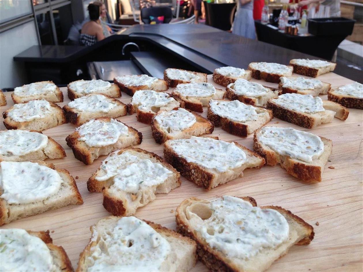 Italy kept it very traditional while serving Bellini’s, but man they were good; and you can’t go wrong with one of those. Finally, we went to Spain, serving up delightful red sangria that was very light and not overly sweet. “Lite Bites” were served and included a selection of Lamb Sliders, Crostini and Ricotta Chive Spread, as well as Skewered Shrimp. The view from the terrace of the W Hotel Downtown is gorgeous as you overlook the city and what will soon be the New World Trade Center. The music played, the drinks kept on coming, and everyone was having a wonderful time from lounging in very comfy chairs, enjoying the cool breeze, and even participating in a life size Connect Four game!
