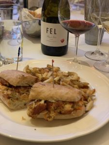 We started with a massive seafood tower piled high with shrimp, clams, oysters, lobster, and crab! This made it a very easy pairing with the 2017 Cliff Lede Sauvignon Blanc. This is a wine with a lot of citrus aromas, key lime, and floral notes. On the palate its vibrant with hints of coconut, honeyed fruit, and basil. This is a refreshing wine that is great for a warm spring day and or an outdoor barbecue. Alongside the Sauvignon Blanc was the 2016 FEL Chardonnay which is a blend of heritage and Dijon clones. It’s a fresh wine with lemon, pineapple, and new oak notes that make it a very playful wine. It’s bright and fruit forward with nice mouthwatering acidity which makes it a great seafood and or fried fish wine!