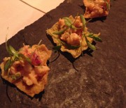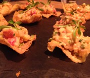 Chino tacos– lobster claw, julienne slaw, salsa verde