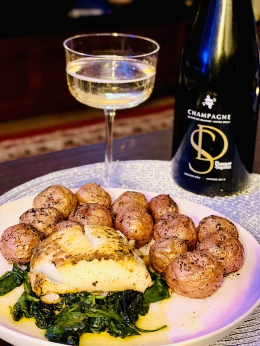 It’s honestly the best cod you will ever have! It bakes well and sears well, and takes just minutes to cook. My husband is obsessed and now demands it every week or two. It pairs so beautifully with a bottle of DS Champagne or a nice bottle of Rosé too. I have had it with both and it’s just a perfect fish to pair with wine.