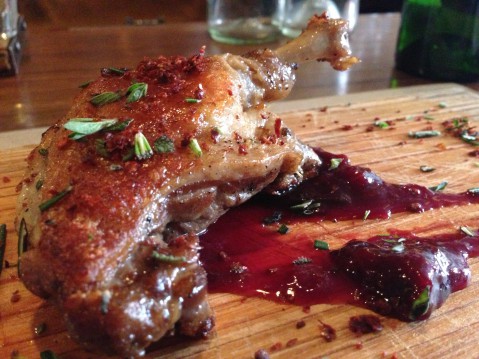 Now, because this site likes to feature daring pairings, Cocktail Craze accepted the challenge and figured out a way to pair Chef Sandy’s menu selections with these creative pickle backs. There are seven different flavors offered and all with spirits that are local or within three hundred miles of NYC. The Beet Pickle Back with Standard Vodka was my favorite, and one, that when paired with the Duck Leg and Spiced Plum Sauce, it was fantastic. The sweet and spicy kick that the Beet Juice has makes the spice in the plum show through in the end, making the juicy duck stand out completely. I have to say, this one is definitely a sexy shot!![]()