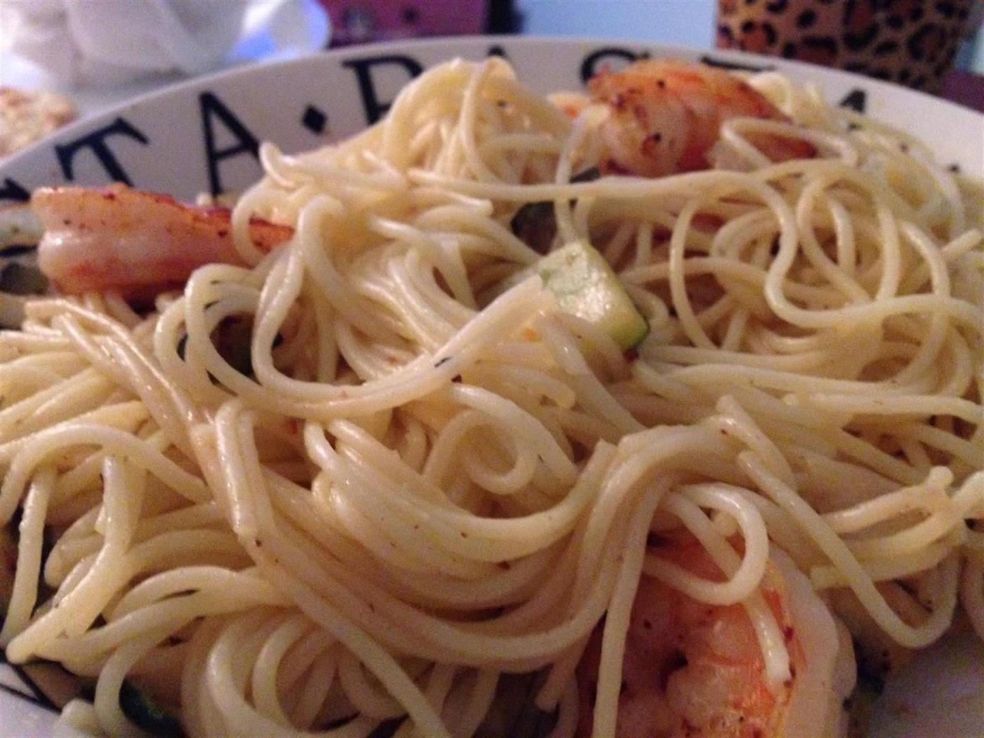 What did we pair? Citrus Garlic Shrimp over Diced Zucchini and Angel Hair Pasta. This dish is light, refreshing, and perfect with the sweet limoncello.