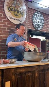 Milan and gives you some insight into his background and the history of pizza. It’s interesting because while he’s talking about history, he’s also making pizza dough, and showing you how to feel for the right consistency.