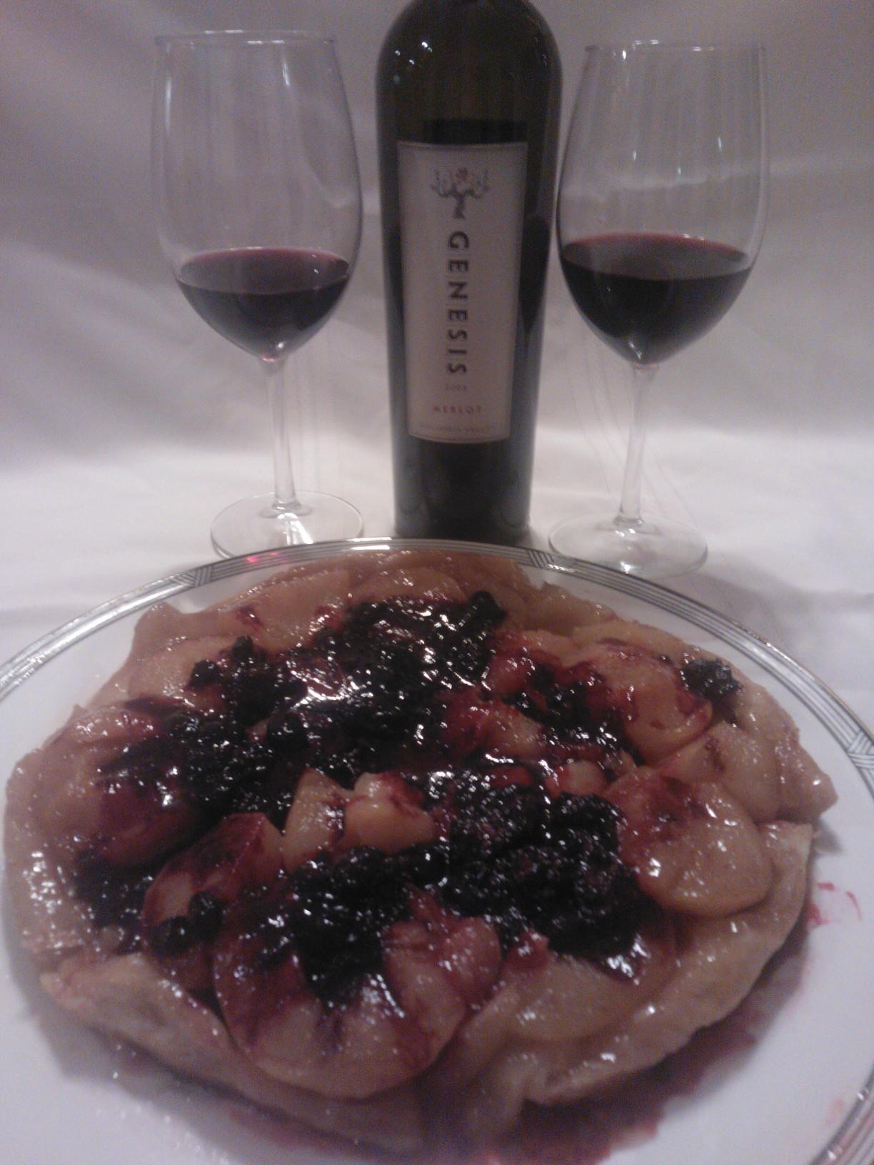 Pairing wine and desserts is a great way to experience the flavors in wine in a completely new way. A merlot would pair beautifully with lamb, steak, or even eggplant, but being a former pastry chef, I love to bake whenever I possibly can. I decided to pair my home made Plum Tart Tatin with blackberry reduction with a 2008 Hogue Genesis Merlot from Columbia Valley, Washington.