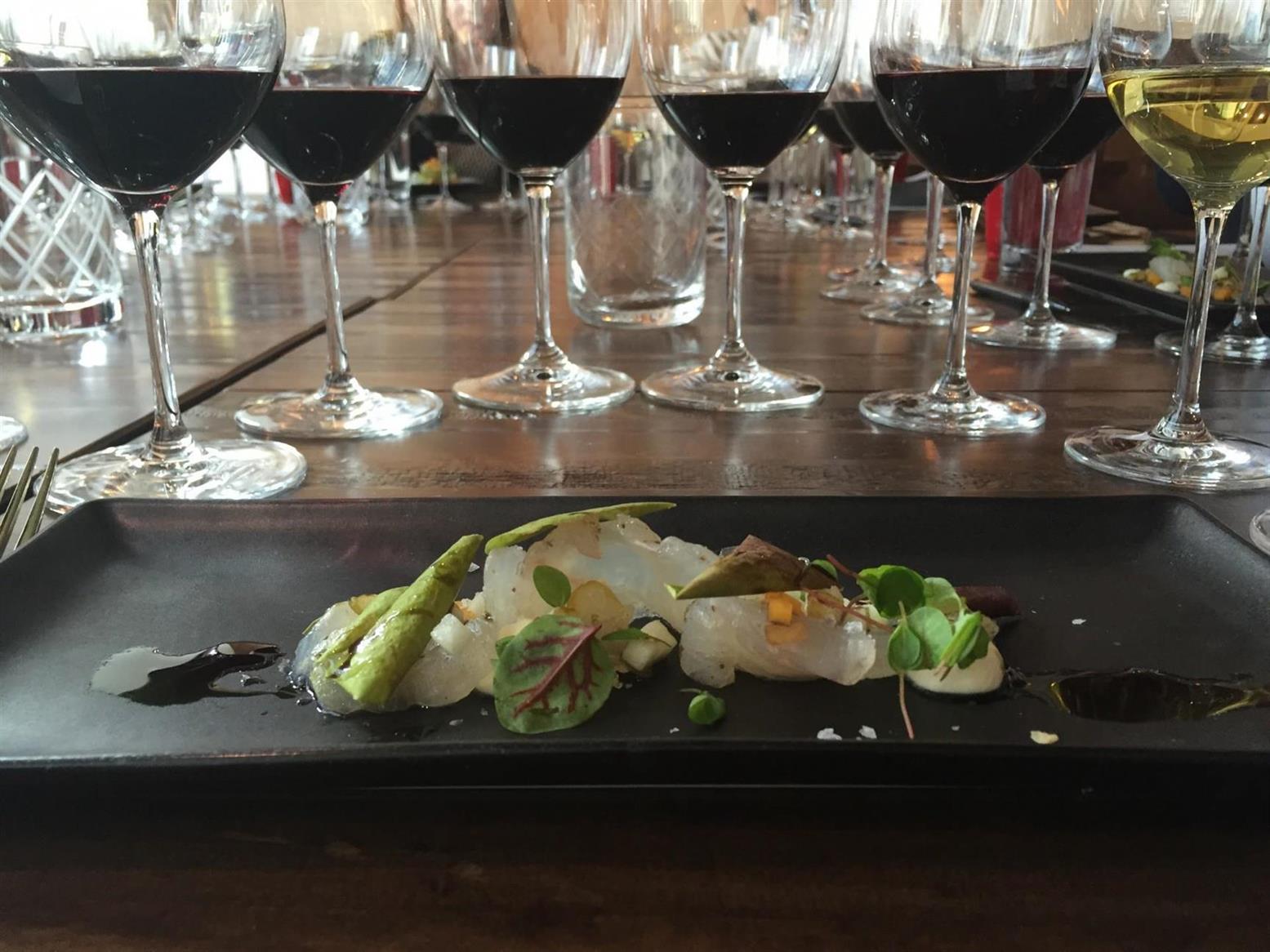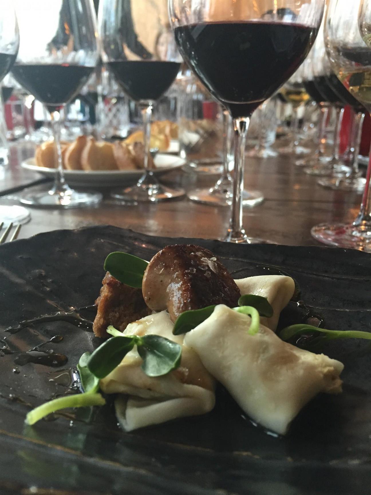 The chef here really made these food and wine pairings pop. The second course of Celeriac Agnolotti: Seared Foie Gras, Sunflower, and Mesquite Cake was out of this world, yum! Paired with this savory dish was the 2013 Petit Syrah Reserve and the 2012 Reserve Syrah Viognier. I love petit syrah, and this 2013 kept it’s acid, fruit forwardness, and earth flavors, which intertwined deliciously with the mesquite cake. The syrah-viognier reminded me very much of the Rhone Valley, given that the wine is 97% syrah and only 3% viognier. Floral notes and balanced tannins are what makes this wine shine with the foie gras, as it washes away the fattiness, making you crave another bite or sip.