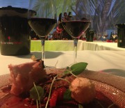 Mexico in the summer can be hot, hot, hot! Poultry Roulade, Smoked Grains and Seeds, Rose Petal Mole, Tcho Bitter Chocolate, Pepper Raja, and Chèvre Tamale, was the dish that won my heart. Maybe it was because of the chocolate, or the fact that I love sweet, salty, and crunchy all in one dish, but whatever it was… it was incredible. Paired with this dish was a Gigondas, Ogier, Oratorio, 2010 Red, and a Hermitage, Delas Frères, Cuvée Marquise de la Tourette, 2008 Red.
