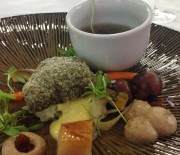 Japan in springtime is beautiful. How do I know? Well, they took us there too! The wines were: Cornas, Clape, Cuvée Renaissance, 2011 Red and a Vinosobres, Perrin, Les Cornuds, 2011 Red. These wines were outstanding as these Syrah grapes do so well in the North. Paired with these two lovely wines was an interesting and authentic dish, in which I could not put down my chopsticks! Kombu Cured Tuna, Rice, Egg, Pickled Vegetables, Nori, Smoked Kombu Broth, and Fermented Tofu was just what these wines needed to create one perfect pairing!