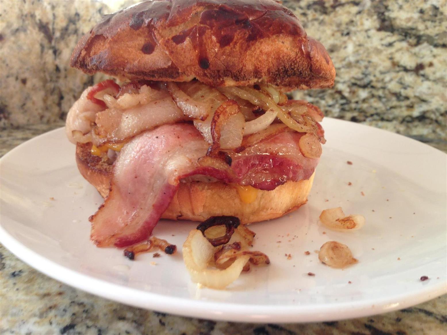 IMG_9449Using organic ground beef, bacon, and brioche to create this mouthwatering burger, you and your Rosé will not be disappointed! The Rosé is dry, well balanced, and the fruit forwardness compliments the juicy burger and crispy brioche very well. The acidity in the wine is medium, medium plus making it perfect for a burger topped with lots of bacon!