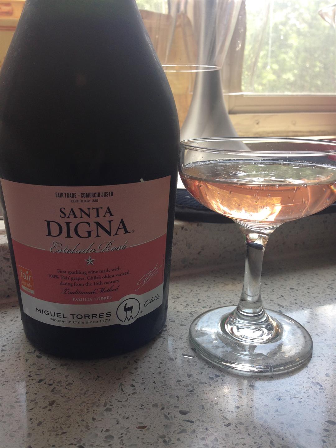 beautiful bubbly! This Santa Digna by Miguel Torres is a fine sparkling wine. The Estelado Brut Rosé is dry and crisp with a lot of rose petal, raspberry, and red currant on the nose. On the palate this wine is dry with some striking blood orange and spicy cherry, which paired extremely well with Red Pepper Shrimp, Shitake Mushrooms, and Tomato Medley, over Zucchini Ribbons.