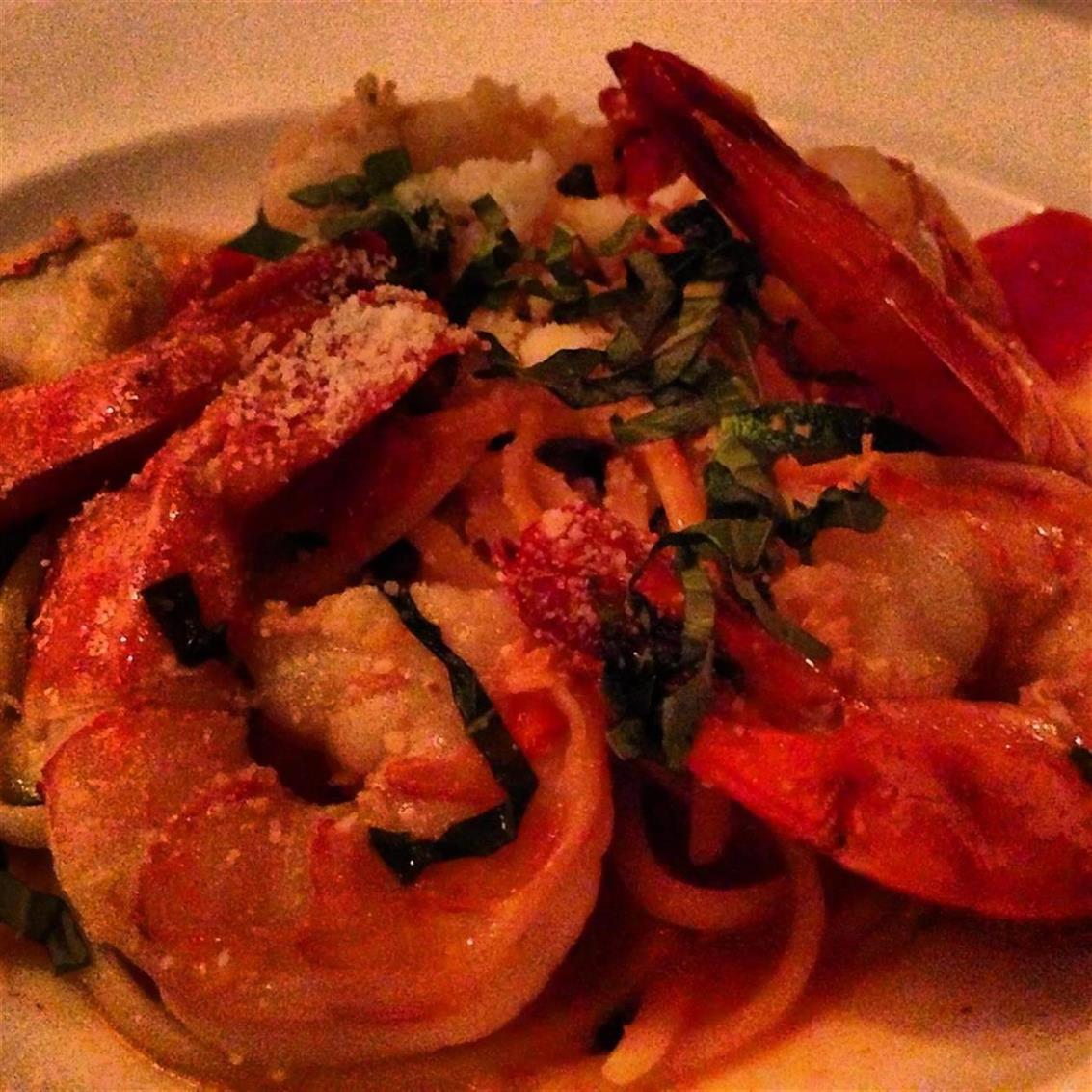 Onward to the entrée, which I had been so excited for once I viewed the menu. Shrimp Scampi over Linguini, Tomatoes, and diced Zucchini, paired perfectly with the Nigl Zweigelt Rosé. The second I saw this wine on the list, I had to have it. This wine is bright with aromas of fresh strawberry, sweet cherry, and flower blossoms; absolutely beautiful.