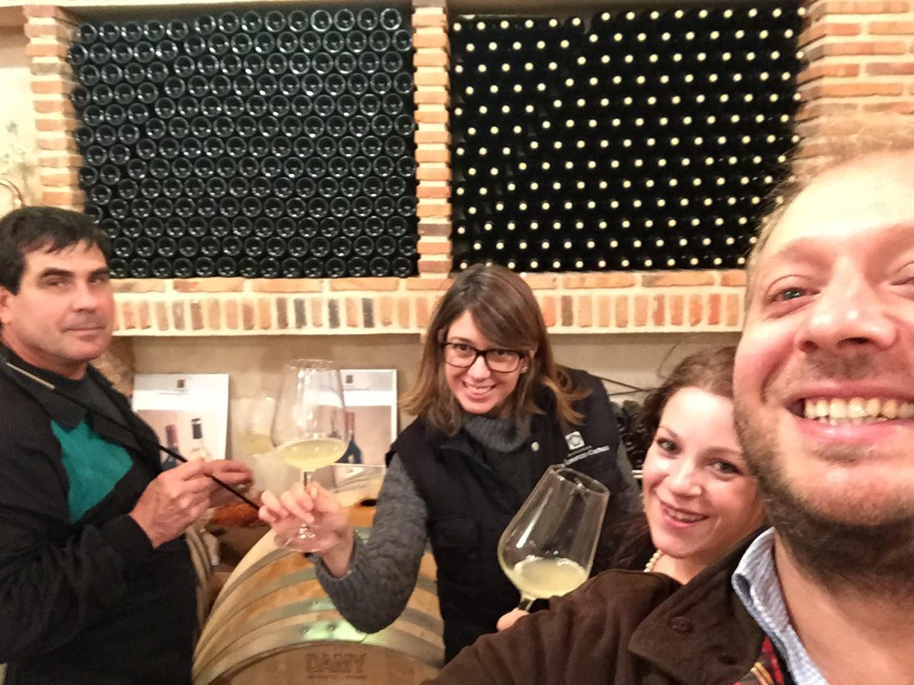 I was over in October 2015, so everything was picked and the vines were turning brown, if not already brown, but I was pleasantly surprised to find an accidental bushel of grapes left on one of the vines. The grapes were tart and delicious, but of course when made into wine… they taste much better! At the winery I was able to try some verdejo straight from the barrel and what a treat that was, sipping wine with the team behind the beautiful Carrasviñas, Entreflores, and Mania labels.