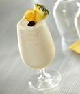 Garnish: Float of Dark Rum, Fresh grated nutmeg, pineapple leaves, pineapple slices