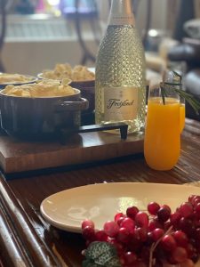 Thank you to my amazing friends over at Freixenet USA for some fantastic Italian Rosé and Prosecco. These bottles are absolutely gorgeous and look like their encrusted in diamonds almost. We started off with a few bottles of the Italian Rosé which paired perfectly with the Tomato and Parmesan Foccacia, Maple Bacon, and Smoked Salmon Toasts! The ladies loved the effervescence of this wine as well as the striking red fruit notes. This wine is dry but has plenty of fruit-forward flavors and a deliciously long finish. It’s ideal with brunch and could easily pair with other favorites such as a frittata, avocado toast, and cheese and charcuterie! The rosé is made from 85% Glera and 15% Pinot Noir grapes, which is an ideal blend and adds