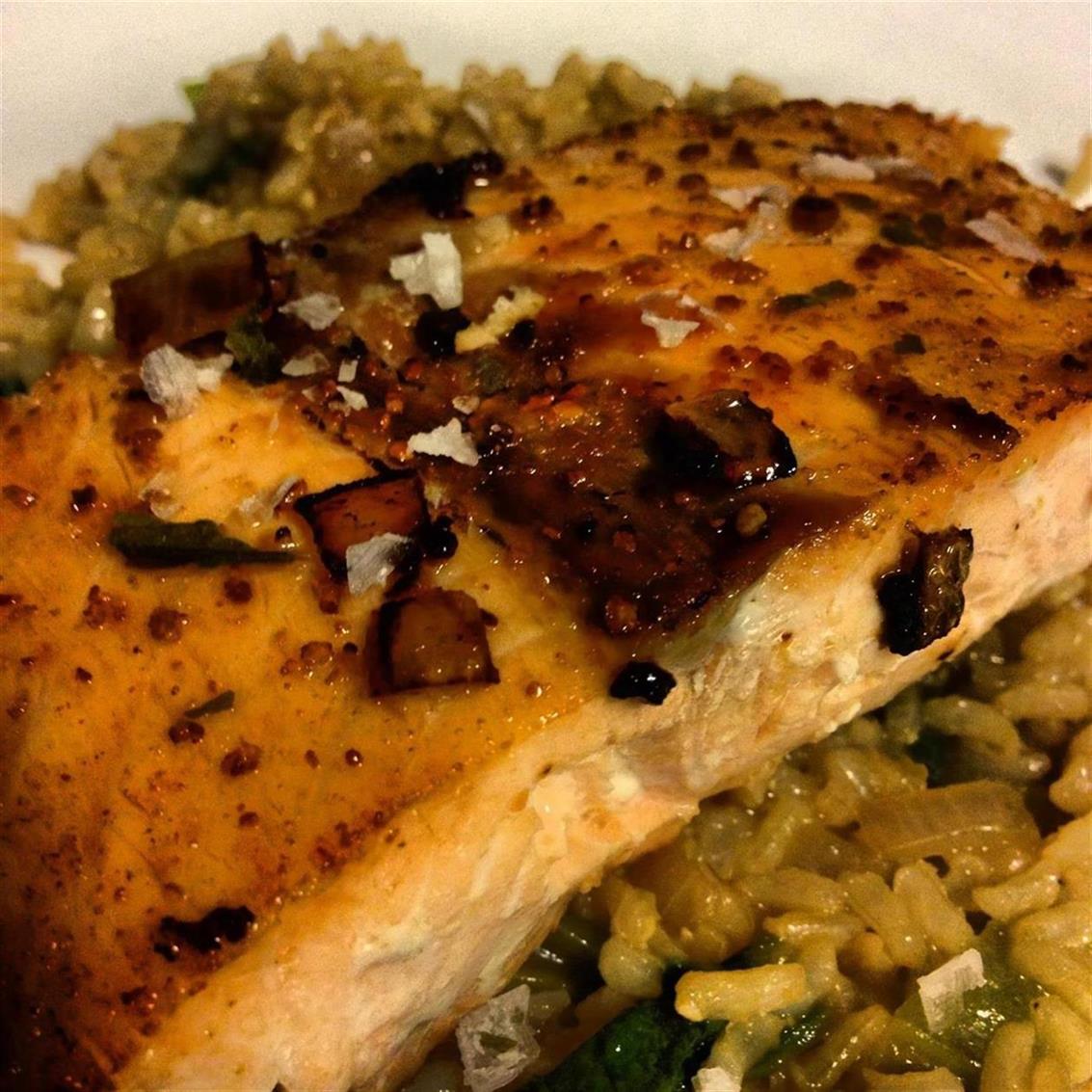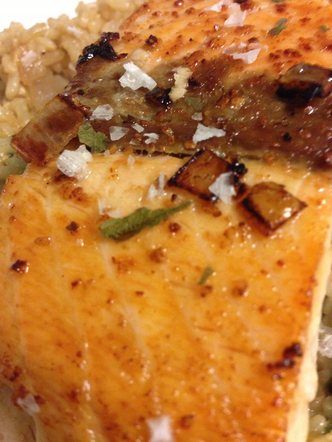 Since it’s winter, and all of our resolutions will be in effect soon, why not try a healthier dish, so you can have an extra glass of wine, and not worry about it hanging around your belly later the next day. Pan seared Salmon Fillets are perfect for a weeknight meal, and if you put that meaty fillet over some Steamed Stir Fried Brown Rice, mixed with Shallots and Bock Choy, your golden!