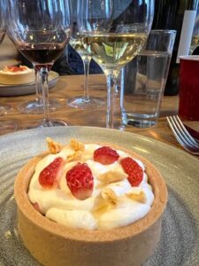 The grand finale was a delicious custard tart paired with one of the best sweeter wines I have had in a very long time. The Enate Gewürztraminer Dulce is outstanding, full of toasty notes, white spice, candied fruit, and citrus. It has incredible balance and is also ideal with foie gras, bold cheeses, and chocolate but I must say it went with this tart extremely well. It’s fresh and lively and a must have for any dinner party!