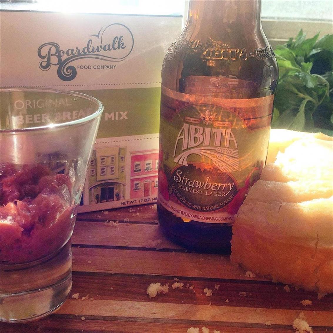 Beer bread? Yes using actual beer in bread is a wonderful way to kick your basic breads up a notch. Boardwalk Beer Bread Co. gives you the ability to handcraft your own breads with your favorite beer! I used the Abita Strawberry Beer to make this beer bread, and it was wonderful! Sweet enough from the strawberry beer, but with all the delicious and warm fresh baked bread qualities we know and love.