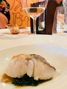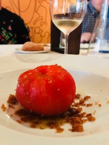 After a wonderful winery visit, it was time for a decadent lunch at Pandemonium Restaurant. “Back in 2003, a group of nine chefs got together to form Asociación Nove Grupo Gastronómico (Nove Association and Gastronomic Group) in order to vindicate the modernity and relevance of the new Galician cuisine without giving up on the origins of the avant-garde gastronomy ‘made in Galicia,’ which combines the best of tradition and innovation.” – Nove.biz. Chef Antonio Botana is the Chef at Pandemonium and served a spectacular 7-course lunch of Creamy Root Vegetable and Anchovy Soup, Tuna Stuffed Tomato Confit, Shrimp over Spicy Rice, Galician Grilled Fish, Galician Pork, and a Chocolate Dessert. Every course paired perfectly with Albariño and the overall experience from service to presentation was exceptional. This restaurant is absolutely worth visiting while in Cambados!