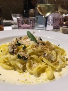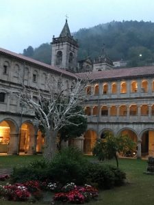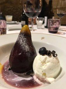 That evening we had the opportunity to stay in one of the coolest hotels. Parador de Santo EstevoThis Monastery in Ribeira Sacra boasts stunning architecture, offers great service and also wonderful room accommodations. Everything is elegant and pristine, including the restaurant which offers an incredible three-course menu for $35 Euro. I enjoyed the first course of Squid Ink Pasta with Cheese and Truffle Sauce, Poached Egg, Pecorino, and White Truffles. The second course was Duck Confit with Bulgar Wheat, Sauteed Mushrooms, and Cherry Chutney. Both courses were filling and delicious! Last but not least, I ended the evening with a red wine Poached Pear and Ice Cream; simple, elegant, and delectable.