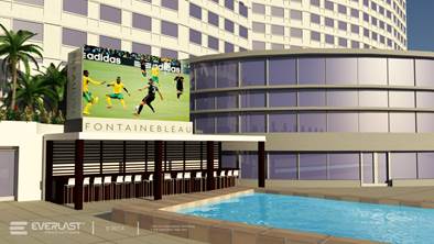 - Glow Bar & Arkadia Pool: A poolside viewing party boasts a 14’x24’ screen placed above the Arkadia Pool. Entertainment and complimentary items, such as banners, bags, t-shirts, and soccer balls, will be available.